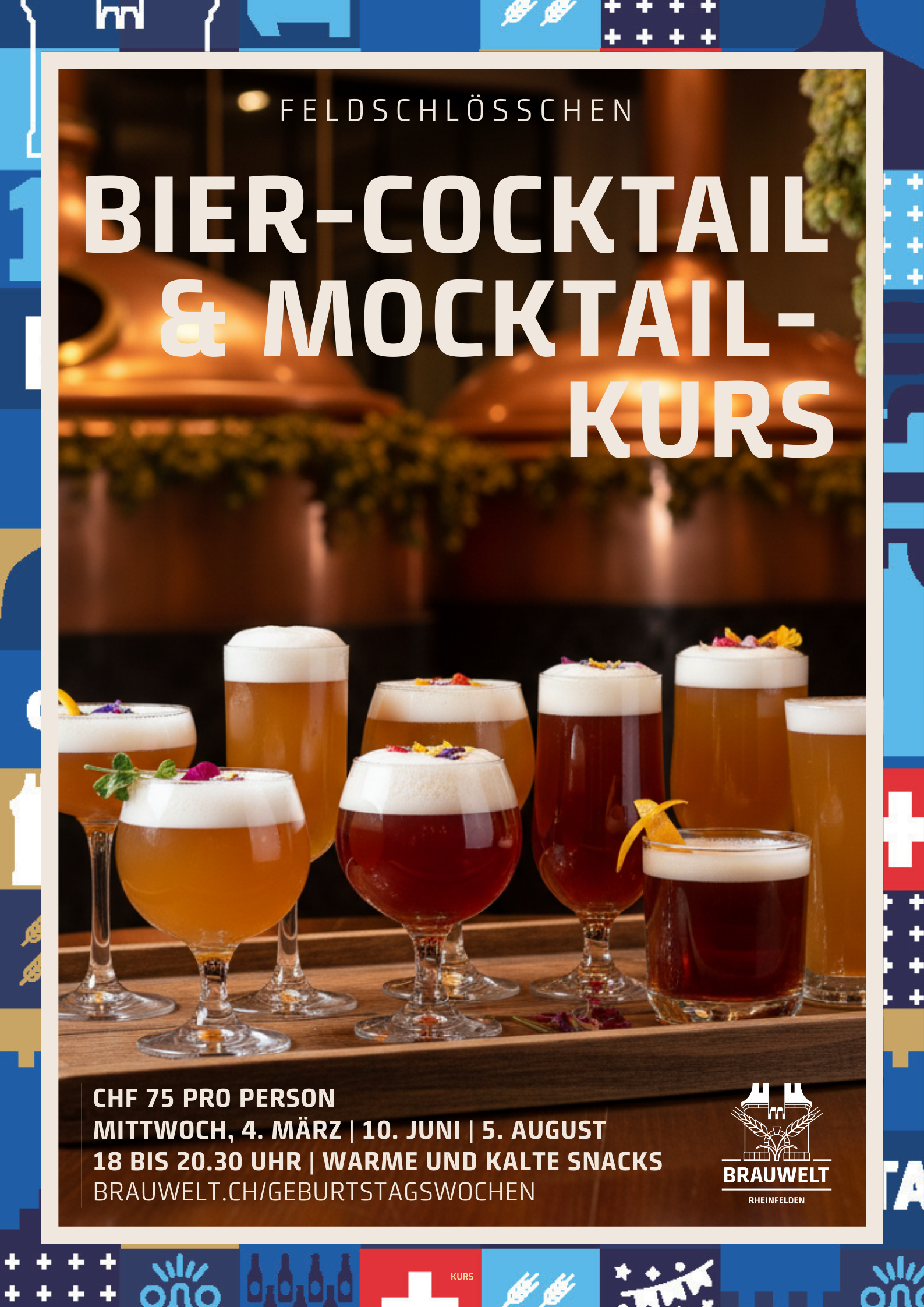 Taucht ein in die kreative Welt der Biermixologie und entdeckt, wie vielseitig Feldschlösschen Biere interpretiert werden können. In unserem Bier-Cocktail- & Mocktailkurs im Feldschlösschen Restaurant lernt ihr, raffinierte Cocktails und erfrischende alkoholfreie Mocktails auf Bierbasis selbst zu mixen.