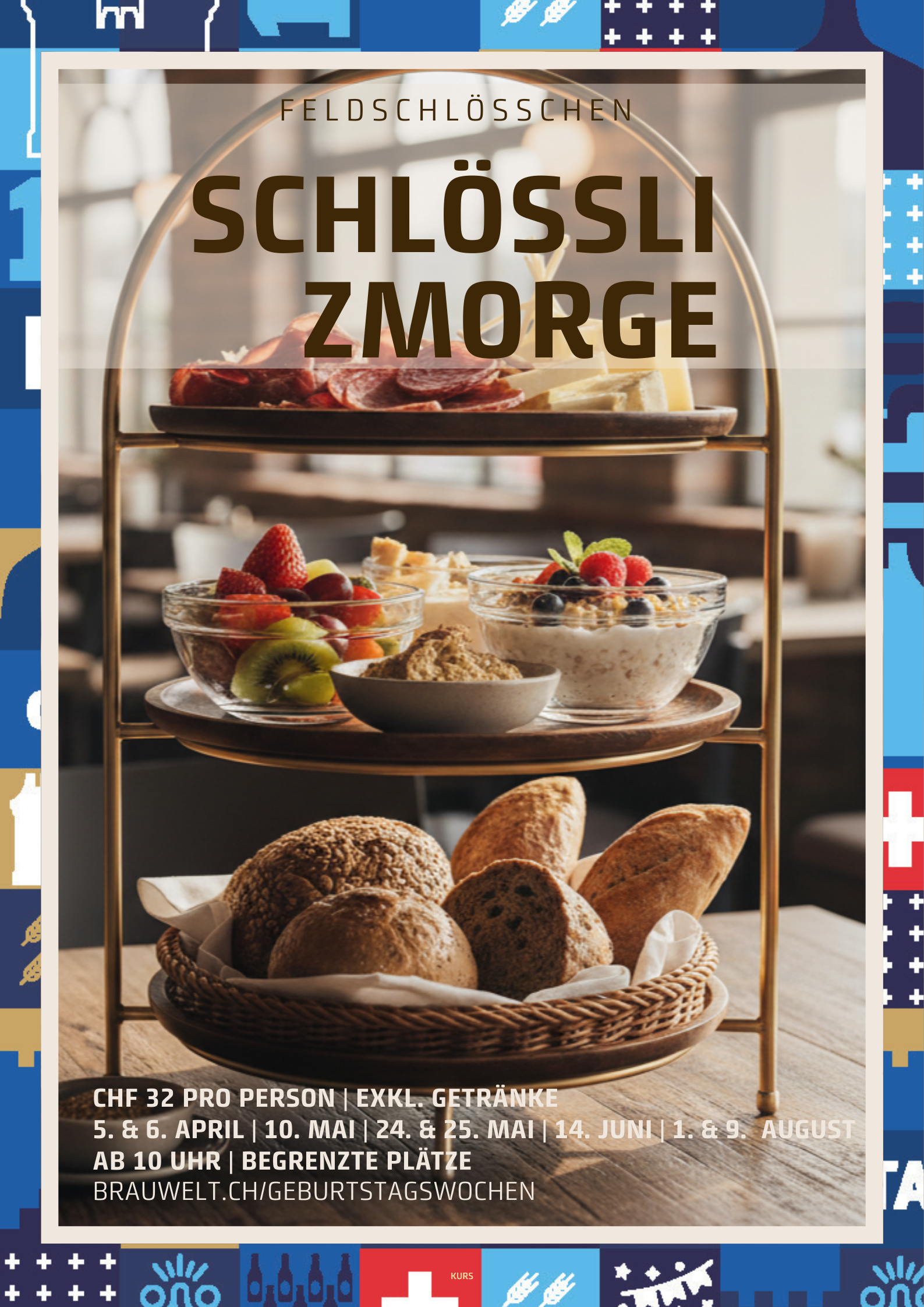 📅 Wann: An ausgewählten Feiertagen (Ostern, Muttertag, Pfingsten und 1. August) sowie den Feldschlösschen Geburtstagswochen (14. Juni und 9. August)